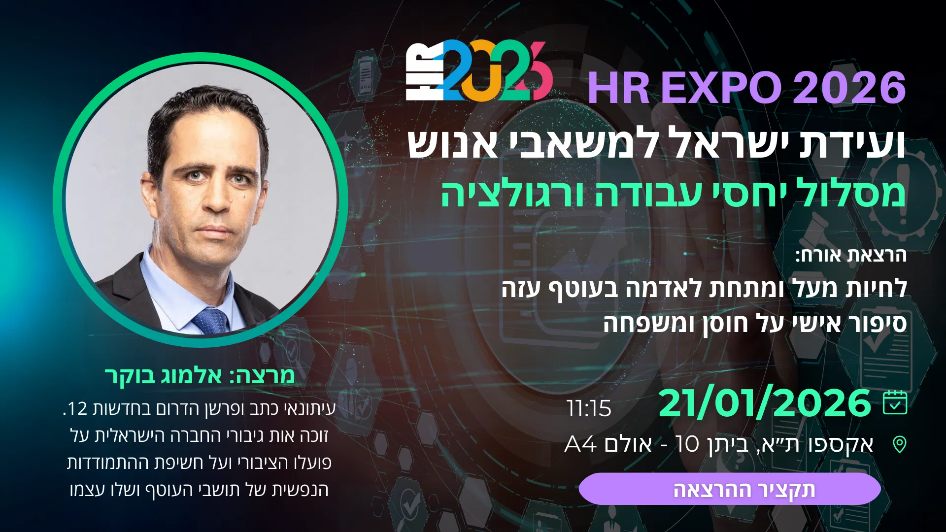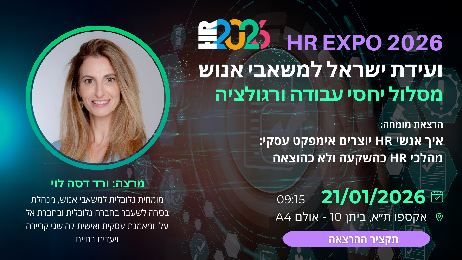 במסלול יחסי עבודה בוועידת HR2026, נצלול לתוך המורכבות של עולם העבודה המשתנה. נבחן כיצד מייצרים אימפקט עסקי דרך מהלכי HR נכונים, איך מנהלים את המתח שבין שקיפות לסודיות בשכר, וכיצד מנווטים בין דרישות החוק למציאות של עבודה היברידית ושינויים טכנולוגיים מואצים.